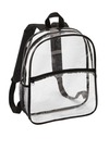 Designed to meet the clear bag policies for stadiums, concerts and events, this pack is also useful in schools, airports and high-security workplaces. Clear PVC Polyester straps and trim Zippered main compartment Zippered front pocket Adjustable, padded shoulder straps Mesh side pocket Dimensions: 15'h x 12'w x 4.25'd; Approx. 765 cubic inches Note: Bags not intended for use by children 12 and under.
