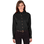 Made from a 65% polyester/35% cotton blend, this ladies short-sleeve twill shirt is great for work uniforms, business attire and so much more! This eye-catching item is treated with Teflon fabric protector for stain release and comes loaded with features: a soft-touch finish, wrinkle resistance, a spread collar without buttons, a double-back yoke, hemmed sleeve, two side back pleats and bone-horn buttons.