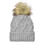 Totally on-trend, this ladies beanie has a thick ribbed cuff and a cable knit crown that¿s topped off by a fun faux fur pom.
