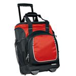 Party-sized cooler rolls with ease on sturdy wheels and an adjustable-height handle.