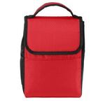 Forget the brown bag. Take your lunch in this cooler that has a heat-sealed, water-resistant lining for easy cleanup. 420 denier honeycomb polyester, 600 denier polyester canvas Padded, self-fabric handle Front flap with hook and loop closure Mesh side pocket Large front slip pocket for easy decoration access Dimensions: 10.5'h x 7.5'w x 6'd; Approx. 473 cubic inches Note: Bags not intended for use by children 12 and under. Includes a California Prop 65 and social responsibility hangtag.
